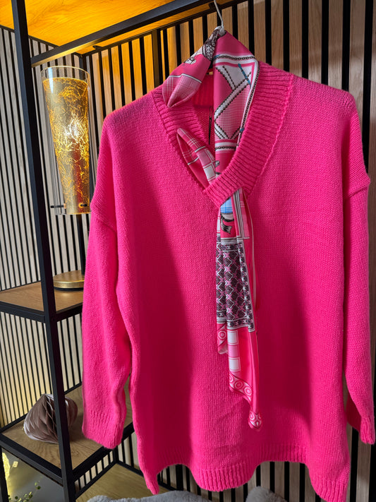 Eleganter gestrickter Damen-Pullover mit Schal 2616